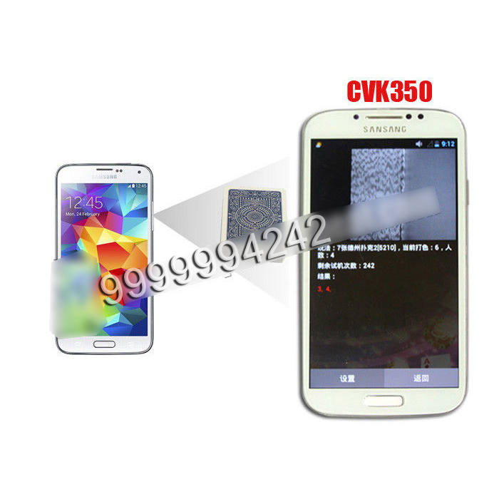 As for CVK Samsung poker analyzer, it also has two different styles, one is having built-in camera, the other is0 without built-in camera to scan bar-codes marking playing cards.