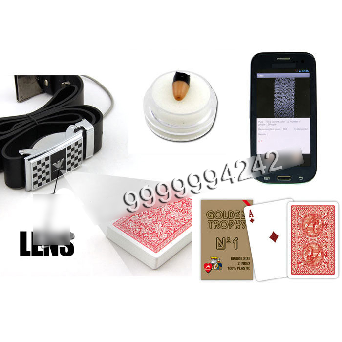 There is a lens hidden in the leather belt which can scan the marked poker that user can know the winner in the poker game.